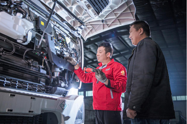 此外,東風(fēng)商用車服務(wù)部還將主動(dòng)關(guān)懷內(nèi)容拓展和延申到了一些特殊客戶。工程車上門駐點(diǎn)服務(wù)即是東風(fēng)商用車針對(duì)工程車客戶的一個(gè)特殊關(guān)懷政策。陳科長(zhǎng)介紹說(shuō):“工程車一般是在一個(gè)集中的工程點(diǎn)實(shí)施作業(yè),多屬于低速重載的工況,通常工地比較偏僻,離我們的服務(wù)站比較遠(yuǎn),在這種情況下,車如果出現(xiàn)問(wèn)題,維修就比較麻煩。車輛出現(xiàn)問(wèn)題時(shí),如果進(jìn)站維修,那么客戶的成本就比較高,因?yàn)檐嚨挠秃谋容^大,跑個(gè)大幾十公里或者上百公里去服務(wù)站的話,不僅耗油、維修成本高,還耽誤了作業(yè)時(shí)間??蛻羰堑⒄`不起的。所以,我們對(duì)工程車是有專門的駐點(diǎn)服務(wù)政策,只要客戶有需求,我們就可以把我們的陽(yáng)光服務(wù)送到客戶家門口,實(shí)施蹲點(diǎn)服務(wù)?!?