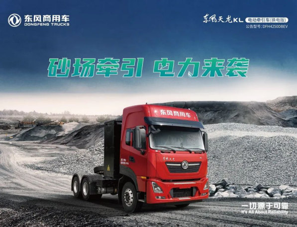三方團(tuán)隊(duì)成員結(jié)合綠色礦山場(chǎng)景和換電技術(shù)方案,面向京津冀區(qū)域的類(lèi)似場(chǎng)景進(jìn)行逐個(gè)探索,針對(duì)客戶(hù)需求,量身定制了針對(duì)砂石料市場(chǎng)的新能源物流解決方案,打造出超可靠、超節(jié)能、自重超輕的東風(fēng)天龍KL電動(dòng)牽引車(chē)(換電版)。