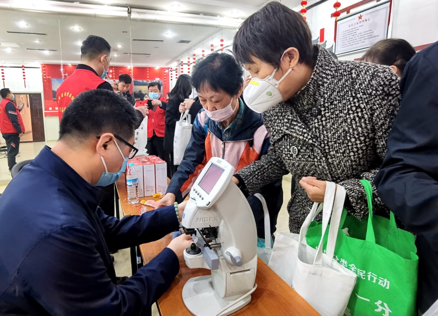 山東省計量院醫(yī)學(xué)計量研究所所長崔濤進行檢測眼鏡