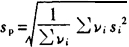 如果這10個被測量每次測量的次數(shù)并非都是4次,而是各不盡相同,則可以分別計算每一次的實驗標準偏差(按貝塞爾公式)si,通過這10個不同的si及其相應不同的自由度νi(按n-1)由下式得出sp,即
