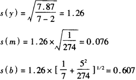 以上所得出的m及b的標準偏差s(m)及s(b)的計算如下。