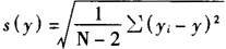 式中yi是按測量給出的,而y則是得到的式子給出的。上式的2是由于這里有兩個被測量。然后按下式分別評定m及b的標準偏差為: