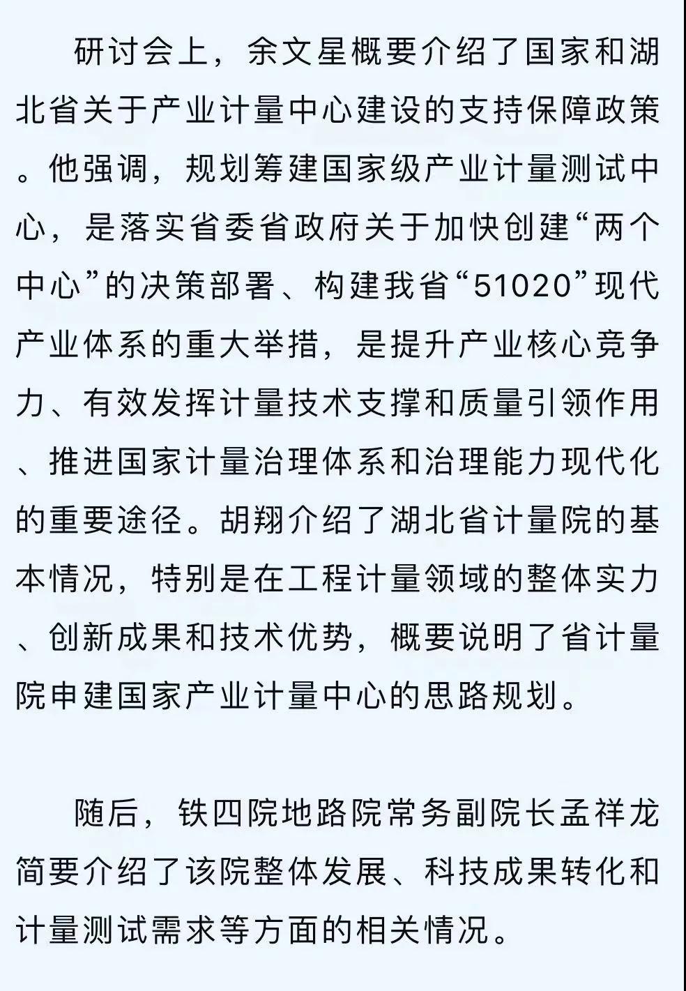 11月19日,湖北省市場(chǎng)監(jiān)督管理局計(jì)量處一級(jí)調(diào)研員余文星、湖北省計(jì)量測(cè)試技術(shù)研究院黨委委員、副總工胡翔帶領(lǐng)省計(jì)量院專家組趕赴中鐵第四勘察設(shè)計(jì)院集團(tuán)有限公司地質(zhì)路基設(shè)計(jì)研究院(簡(jiǎn)稱鐵四院地路院),開展“我為群眾辦實(shí)事——把脈定向牽引產(chǎn)業(yè)計(jì)量發(fā)展”交流研討活動(dòng)。