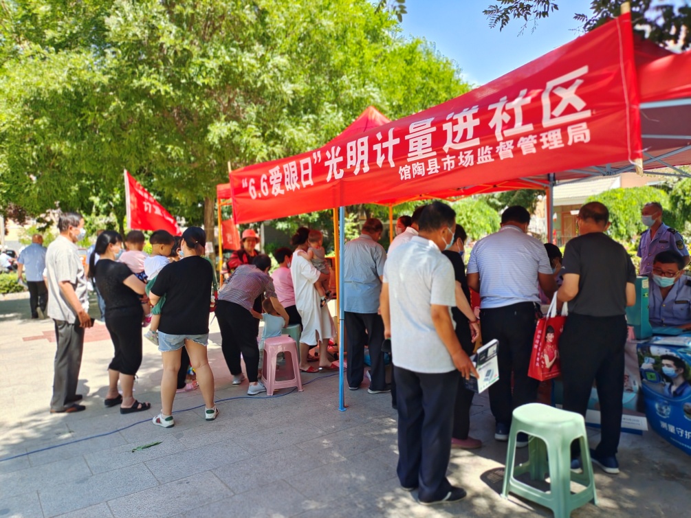 為深入開(kāi)展黨史學(xué)習(xí)教育活動(dòng),積極踐行“我為群眾辦實(shí)事”要求,館陶縣市場(chǎng)監(jiān)督管理局在2022年6月6日第27個(gè)全國(guó)“愛(ài)眼日”到來(lái)之際,走進(jìn)溫泉花園小區(qū)開(kāi)展守護(hù)“晴”彩視界,點(diǎn)亮“光”明未來(lái)為主題的計(jì)量惠民服務(wù)活動(dòng)。此次活動(dòng)大力宣傳關(guān)注全年齡段全生命期眼健康的重要意義。重點(diǎn)關(guān)注兒童青少年、老年人兩個(gè)重點(diǎn)人群,宣傳普及眼健康科學(xué)知識(shí),倡導(dǎo)“每個(gè)人都是自己健康第一責(zé)任人”的理念,增強(qiáng)群眾愛(ài)眼護(hù)眼意識(shí)。