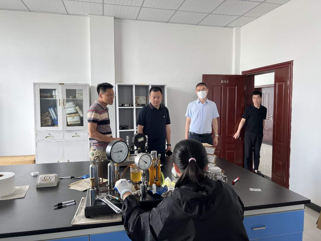 在孫衛(wèi)軍的陪同下,易坤一行實地考察了潛江分院燃氣表、出租車計價器、溫度、壓力、節(jié)能檢測等重點實驗室和大容量油罐車檢定項目現(xiàn)場。座談會上,易坤聽取了孫衛(wèi)軍關(guān)于潛江分院2022年以來,加強支部建設(shè)、標準建設(shè)、隊伍建設(shè)、計量服務(wù)體系建設(shè)等方面情況的匯報。