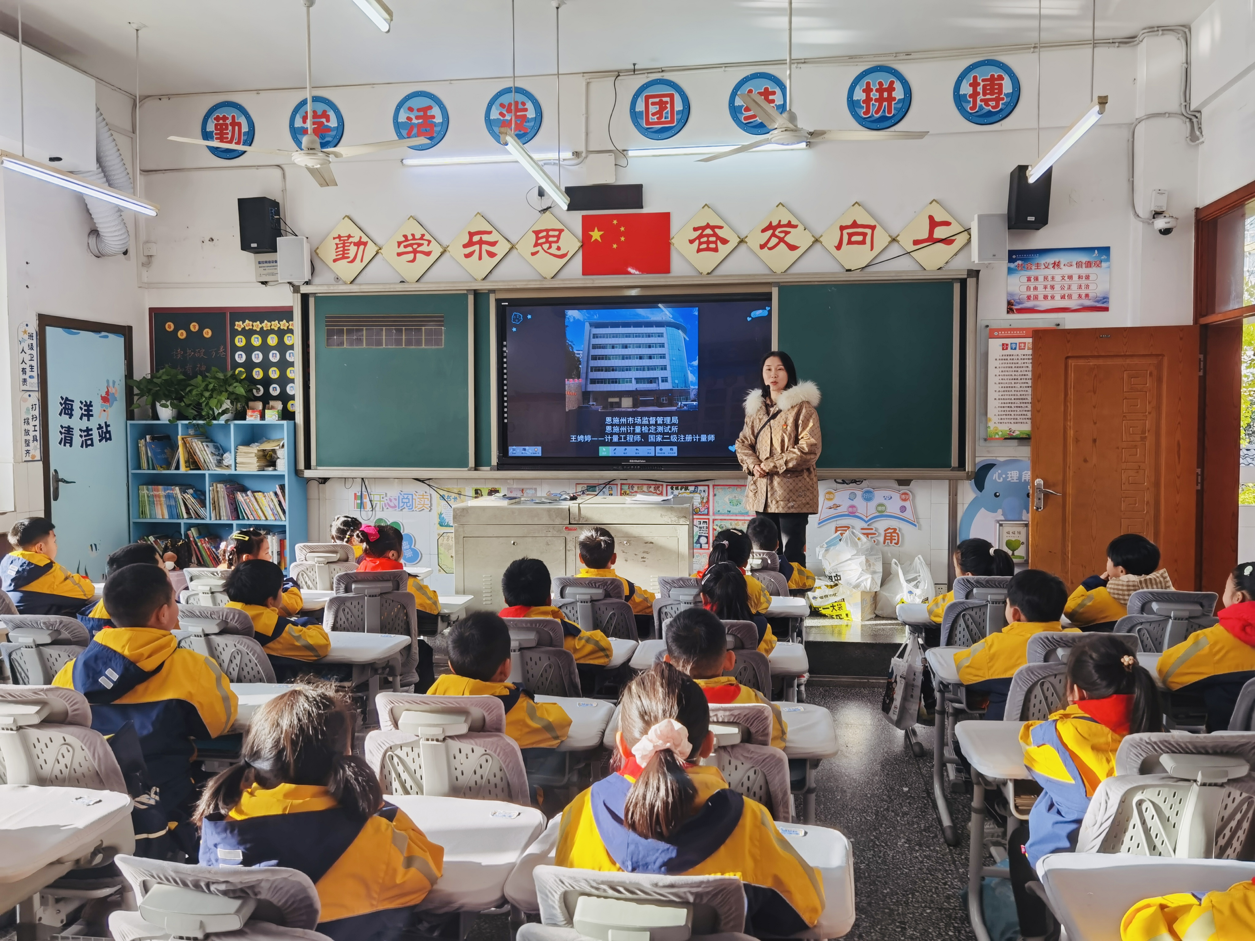 初冬秋盡早霜,銀杏枝頭葉黃。11月28日上午,恩施市施州小學(xué)205班正在進(jìn)行一堂別開生面的計量科普課,恩施州計量檢定測試所計量工程師王娉婷帶著滿滿的熱情與知識,為同學(xué)們開啟了一段奇妙的計量之旅。