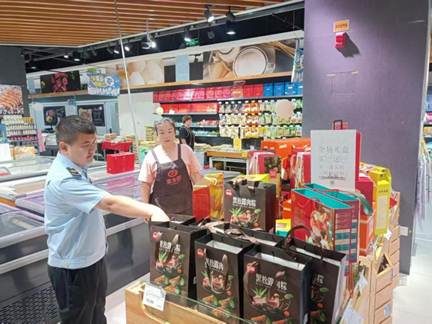執(zhí)法人員深入轄區(qū)內(nèi)各大超市、商場(chǎng)以及禮品店,重點(diǎn)檢查粽子禮盒及其他禮盒的包裝層數(shù)、包裝成本與售價(jià)的比例、包裝材料是否合規(guī)以及是否存在混裝現(xiàn),過(guò)度包裝不僅增加消費(fèi)者負(fù)擔(dān),造成資源浪費(fèi)和環(huán)境污染,也背離了傳統(tǒng)節(jié)日的文化內(nèi)涵。