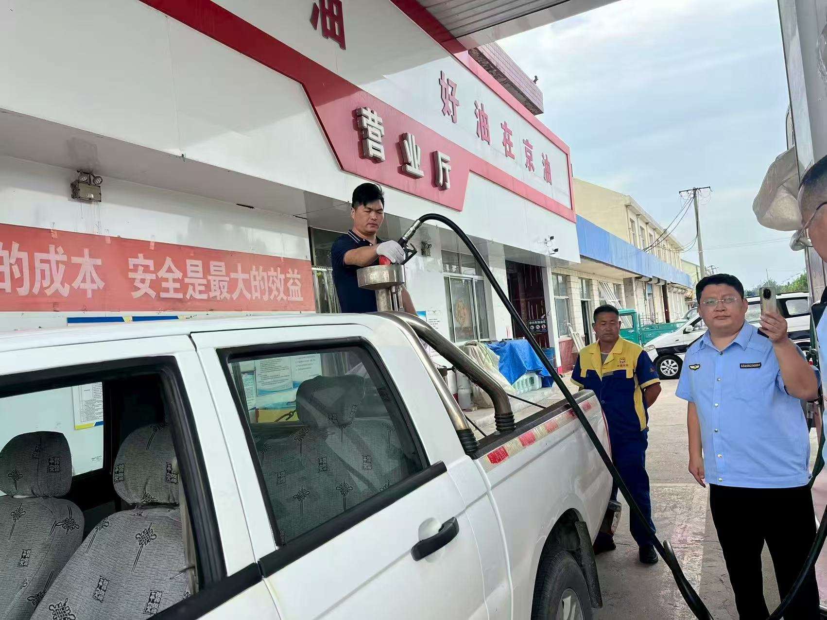 檢定人員嚴格按照國家計量檢定規(guī)程JJG 443-2015《燃油加油機檢定規(guī)程》開展檢定工作,確保加油機量值準確。檢定人員還仔細檢查了加油機主板、編碼器、流量計、調節(jié)器等重要位置鉛封,確保鉛封完好,保證加油機計量準確,并在檢定合格加油機醒目處張貼檢定合格標簽。同時,檢定人員還向加油站工作人員詳細宣傳了計量法律法規(guī)知識。