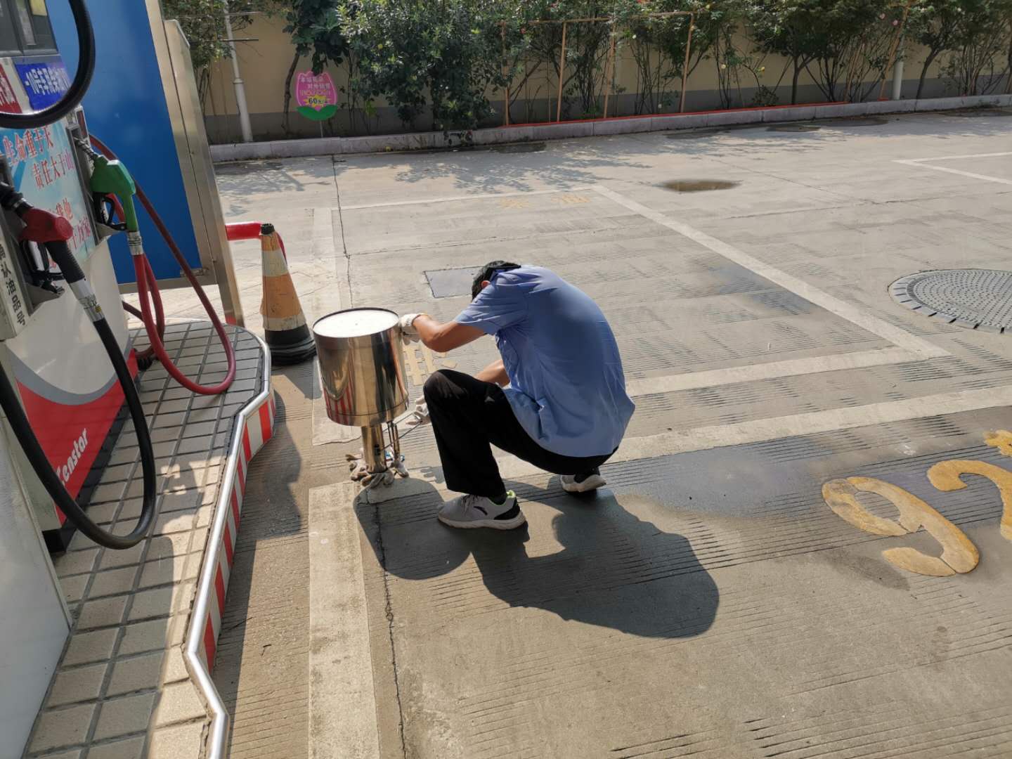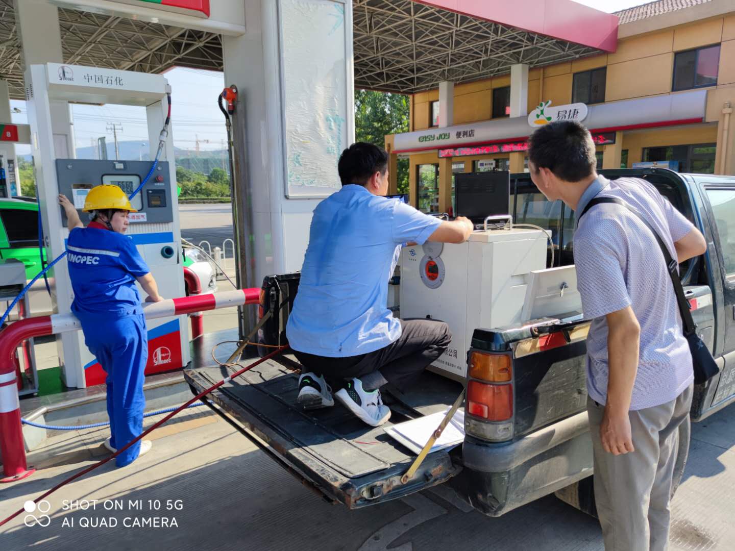 持續(xù)的高溫工作,檢定人員汗流浹背,衣服不一會就濕透了,即便如此,他們沒有一刻休息,馬不停蹄的趕往一個又一個加油站、加氣站去檢查。