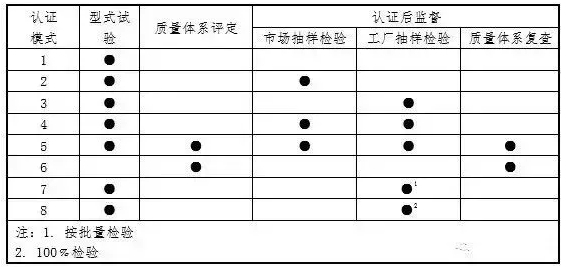 國際上通用的認(rèn)證模式為八種,具體可歸納為下表: