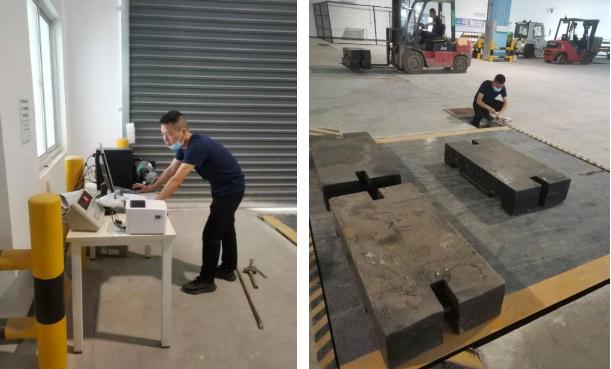 近日,受湖北國際物流機(jī)場(chǎng)有限公司委托,為確保鄂州花湖機(jī)場(chǎng)6月底順利開航投運(yùn),湖北省計(jì)量院鄂州分院緊急對(duì)機(jī)場(chǎng)貨運(yùn)站新安裝的4臺(tái)電子地上衡進(jìn)行了檢定。