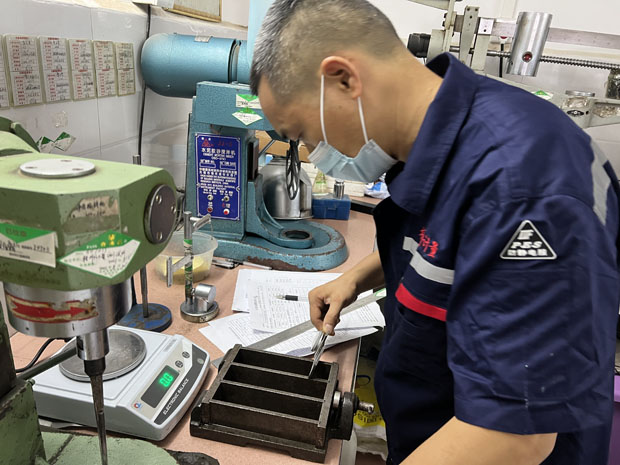 ▲梧州市計量所長度檢定技術(shù)專家為永安建材檢測有限公司認真檢定儀器設(shè)備。