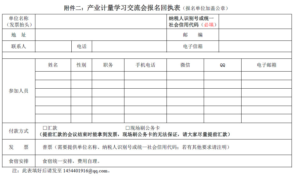 歡迎參會人員提交交流材料,介紹當?shù)赜嬃糠债a(chǎn)業(yè)的具體情況,以及國家產(chǎn)業(yè)計量測試中心、省產(chǎn)業(yè)計量測試中心組織建設(shè)情況,我們將擇優(yōu)安排會上發(fā)言,材料請于11月10日前發(fā)送至報名郵箱(1454401916@qq.com)。