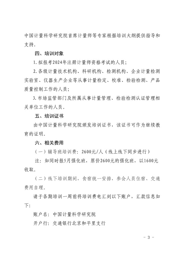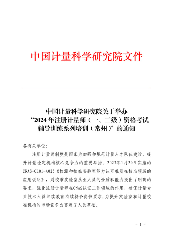 中國(guó)計(jì)量院2024年注冊(cè)計(jì)量師(一、二級(jí))資格考試輔導(dǎo)訓(xùn)練系列培訓(xùn)班(常州)