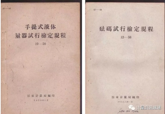 1957年,國(guó)務(wù)院將一機(jī)部工具科學(xué)研究院的計(jì)量部分并入國(guó)家計(jì)量局,統(tǒng)一負(fù)責(zé)全國(guó)計(jì)量管理、計(jì)量系統(tǒng)、計(jì)量技術(shù)和國(guó)家計(jì)量標(biāo)準(zhǔn)的建立等工作。1956年,國(guó)家計(jì)量局開(kāi)始著手計(jì)量檢定規(guī)程的制定,在管理模式上從立項(xiàng)、起草到出版、發(fā)行,均由國(guó)家計(jì)量局統(tǒng)一負(fù)責(zé)。1958年正式以國(guó)家計(jì)量局的名義頒布實(shí)施了一批國(guó)家計(jì)量檢定規(guī)程,可以說(shuō)這是新中國(guó)成立以來(lái)中國(guó)第一批國(guó)家計(jì)量檢定規(guī)程,共計(jì)41種,分三種版本。一種是1958年1月發(fā)行的,外包皮為白色,尺寸為(20×13.9)cm;一種是1958年8月發(fā)行的,外包皮為淺藍(lán)色,尺寸為(18.4×12.8)cm;第三種也是1958年發(fā)行的,外包皮為淺黃色,尺寸為(26.0×18.4)cm。檢定規(guī)程編號(hào)方法簡(jiǎn)單明了,如鋼直尺試行檢定規(guī)程編號(hào)為:1-58(見(jiàn)下圖)。