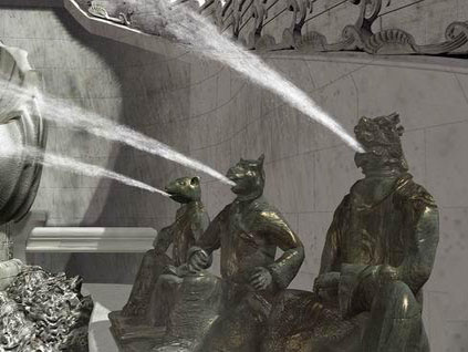 清代乾隆年間在圓明園“海宴堂”西洋古建筑前,建有一個大型噴水池。這組噴泉構(gòu)思獨特,設(shè)計巧妙,被人稱為十二生肖“水力鐘”。此噴泉和十二生肖計時方法結(jié)合起來,組成一組構(gòu)思新奇絕妙的噴泉景觀。噴水池正中是一個高約二米、用三塊巨石雕成的蛤蜊,遠(yuǎn)遠(yuǎn)望去象一朵盛開的蓮花。兩旁八字形的石臺上,各有六個人身獸頭的銅鑄小動物,即鼠、牛、虎、兔、龍、蛇、馬、羊、猴、雞、狗、豬十二生肖,每個動物就是一個噴泉機關(guān),每到一個時辰,相應(yīng)動物口中就噴水兩小時。如子時是鼠噴水,丑時則換作牛噴水。十二個動物輪流值班,定時噴水,構(gòu)成了連續(xù)不斷的噴水時鐘;游人路經(jīng)此處,只要看看當(dāng)時由哪個動物噴水,就知道是什么時辰了。正午時,十二銅像口中同時噴射泉水。據(jù)說“海宴堂”和這組十二生肖“水力鐘”是為乾隆皇帝六十大壽興建的。由于它構(gòu)思奇特,靈氣十足,所以深得乾隆皇帝喜愛,常來此處觀賞游玩。可惜,1860年英法聯(lián)軍焚燒圓明園,這一奇特景觀從此消失了?,F(xiàn)在,人們到圓明園遺址看到的就是“海宴堂”西洋樓的殘石斷柱。十二生肖噴水池進(jìn)行了清理整修,那美麗的石雕蛤蜊依然吸引著游人。但愿有朝一日,十二生肖“水力鐘”能重放異彩。