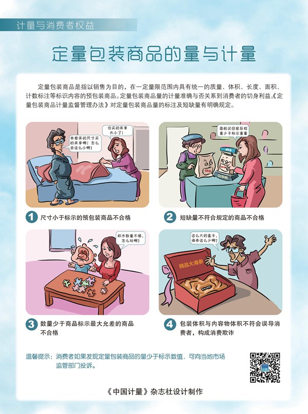 “計量與消費者權益宣傳彩頁”通過老百姓喜聞樂見的漫畫形式,生動體現(xiàn)出計量與消費者權益保護密切相關,對人們生產(chǎn)生活、消費維權的保障發(fā)揮著重要作用。
