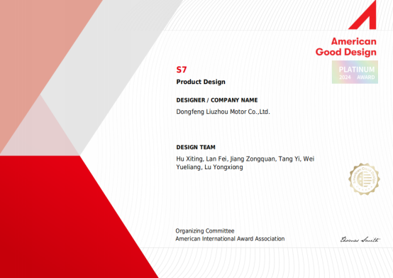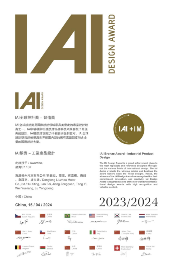 憑借其獨(dú)特的產(chǎn)品設(shè)計(jì)“辨識(shí)度”,風(fēng)行星海S7還成功斬獲美國(guó)好設(shè)計(jì)獎(jiǎng)、亞洲設(shè)計(jì)獎(jiǎng)、亞太IAI設(shè)計(jì)大獎(jiǎng)的殊榮,登頂國(guó)際設(shè)計(jì)舞臺(tái),助力東風(fēng)風(fēng)行乃至自主汽車設(shè)計(jì)審美走向新高度。