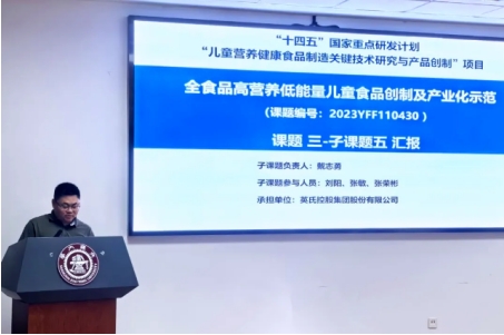 英氏控股集團承擔(dān)了課題三“兒童食品減鹽降糖技術(shù)研究與高營養(yǎng)低能量食品創(chuàng)制”的研究任務(wù),總裁助理戴志勇在“全食品高營養(yǎng)低能量兒童食品創(chuàng)制及產(chǎn)業(yè)化示范”匯報中表示,英氏兒童產(chǎn)品開發(fā)始終追求降糖、減脂、降鈉、配料簡化等健康方向,并在擠壓膨化、冷凍干燥等工藝上已積累豐富的開發(fā)經(jīng)驗。課題組對英氏當(dāng)前已取得的成果表示了高度認可,未來,英氏也將充分結(jié)合先進的減鹽降糖等關(guān)鍵技術(shù)成果,采用全食品適度和綠色加工技術(shù),創(chuàng)制兼顧營養(yǎng)與美味的兒童健康食品。
