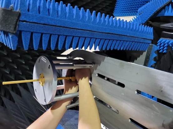 測試中最困難的部分是對天線連接處的調(diào)平工作,毫米波段的天線連接處為了性能,都是通過波導(dǎo)的硬鏈接,波導(dǎo)不能被彎折,因此需要對天線底座進(jìn)行精細(xì)的調(diào)整,以保護(hù)饋源的同時保證鏈接質(zhì)量。實驗隊員不畏艱難,在暗室里一絲一絲地擰動天線底座上的四個調(diào)平螺母,盡可能的將底座調(diào)平,以保證鏈接質(zhì)量,汗水浸濕上衣是家常便飯。最終,各個頻點饋源波導(dǎo)的鏈接質(zhì)量均滿足了測試需求,完成全部測試工作。