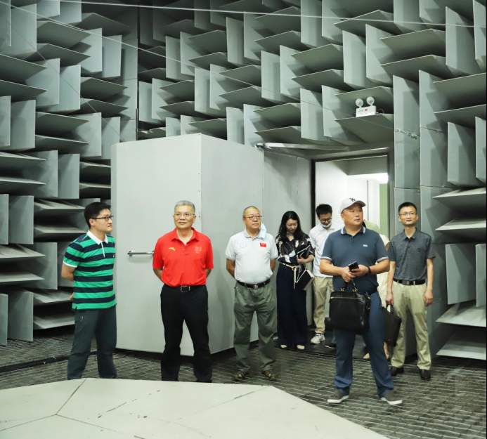 在葛久志的陪同下,何麗蘋、鄭偉濤、王朝暉、魏勇一行實地參觀了省計量院電磁兼容實驗室(十米法)、三坐標測量實驗室、聲學“三大室”等重點計量檢測實驗室,深入了解了省計量院近年來人才培養(yǎng)、能力建設、科研創(chuàng)新等方面情況,聆聽了省計量院關于聲學、光學及其他體育相關專業(yè)領域、前沿科研方向上的技術和創(chuàng)新服務情況介紹。