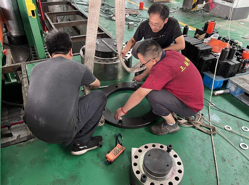 入夏以來,各地氣溫急劇上升。8月15日,在浙江臺州天鐵集團,湖北省計量院力學(xué)所計量人員正在檢定3500t超大力值試驗機,為企業(yè)解決生產(chǎn)難題。密不透風(fēng)的廠房里,最高氣溫一度超過40℃,讓人難耐。然而,高溫反而令計量人員打起了十足的精神,他們?nèi)螒{汗水打濕衣裳、滴入眼睛,依舊有條不紊地嚴(yán)格按照規(guī)程開展檢定工作。檢定現(xiàn)場,計量人員說:“越是環(huán)境艱苦,越要在崗位上認(rèn)真做好自己的工作!天氣很熱,手上胳膊上全是汗,我們在調(diào)試設(shè)備時要特別小心注意,保證安全。”