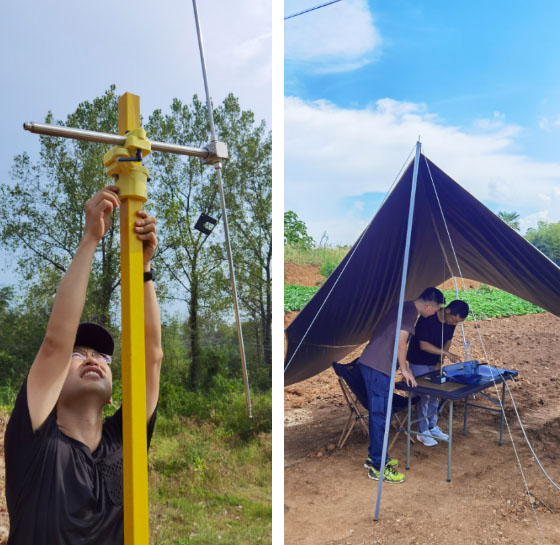 入夏以來,湖北多地頻發(fā)高溫紅色預(yù)警,極端高溫天氣對戶外現(xiàn)場檢測來說是一個極大的考驗。8月17日,湖北省計量院電磁兼容與安規(guī)所檢測人員對嘉魚通用機場進行電磁環(huán)境現(xiàn)場檢測。檢測地點地處野外,太陽光線強烈,氣溫高達42℃,且方圓幾公里內(nèi)沒有人煙。檢測人員克服種種困難,在高溫、日曬下快速搭建起簡易現(xiàn)場檢測實驗室,迅速開始電磁輻射數(shù)據(jù)現(xiàn)場測量工作。為保證項目建設(shè)進度,他們放棄午休,在極端高溫戶外環(huán)境下,馬不停蹄地對一個又一個觀測點展開測量,保障了國家重點建設(shè)項目的順利進行。