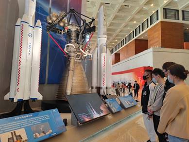 在參觀長征七號火箭系統(tǒng)的過程中,大家了解到,運(yùn)載火箭作為太空探索的運(yùn)載工具,其有著,“運(yùn)載能力有多大,太空探索舞臺就有多大”的重要作用。中國航天人在運(yùn)載火箭的研究設(shè)計中不斷探索,艱苦奮斗,取得了長征二號F、長征七號、長征五號B運(yùn)載火箭以及新一代載人運(yùn)載火箭的成功建設(shè),火箭整體技術(shù)越來越成熟,火箭發(fā)射所需要的周期也越來越短,。成員們?yōu)椴粩嗟苌该桶l(fā)展的運(yùn)載火箭系統(tǒng)建設(shè)深深折服,為中國航天的自主創(chuàng)新成果感到無比自豪。