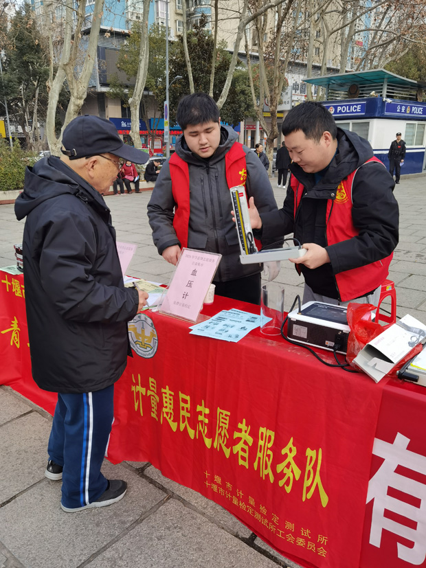 在活動現(xiàn)場,十堰市計量所青年志愿者們發(fā)放民生計量知識宣傳冊,講解“民用三表”(水表、電能表、燃?xì)獗恚┮约俺鲎廛囉媰r器、燃油加油機(jī)等常見計量器具的相關(guān)常識。在講解過程中,現(xiàn)場的一位市民朋友說到:“我知道,你們是搞量值傳遞和溯源的,你們的工作很重要,很了不起呀……”?;顒永塾嫲l(fā)放宣傳冊200余份,現(xiàn)場檢定血壓計50余臺、電子秤60余臺。