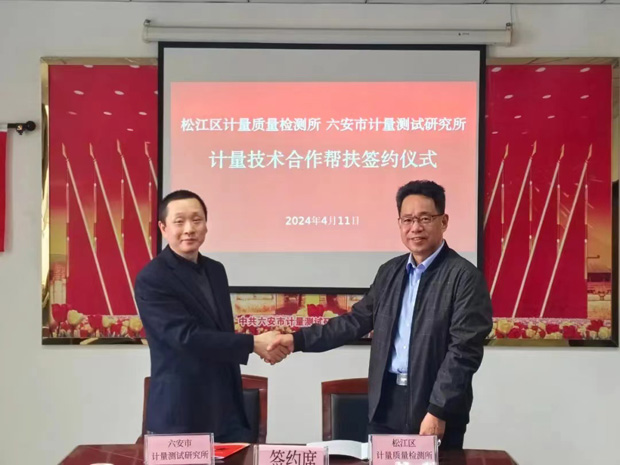 會(huì)上,松江區(qū)計(jì)量質(zhì)量檢測(cè)所、六安市計(jì)量測(cè)試研究所共同簽訂了《松江六安兩地計(jì)量技術(shù)合作幫扶備忘錄》。期間,松江區(qū)市場(chǎng)監(jiān)管局調(diào)研組一行還對(duì)六安市計(jì)量測(cè)試研究所、金寨縣市場(chǎng)監(jiān)督檢驗(yàn)所開展了實(shí)地考察,并赴金寨縣古碑市場(chǎng)監(jiān)管所進(jìn)行了調(diào)研。