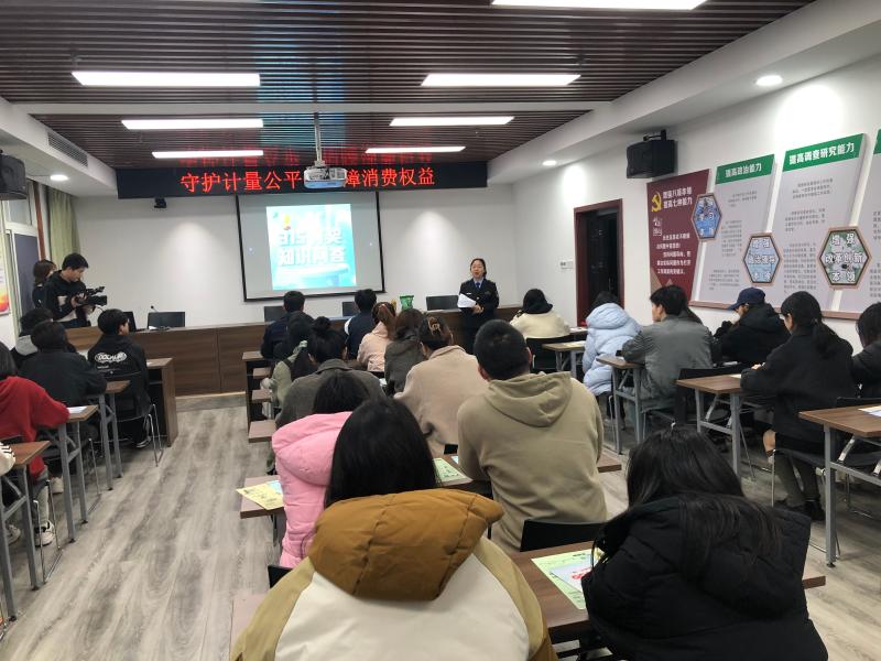 為了讓學(xué)生代表們更加深入地了解計量工作,市場監(jiān)管人員化身“科普達(dá)人”,用通俗易懂的語言和生動形象的案例,為同學(xué)們講解了《中華人民共和國消費者權(quán)益保護(hù)法》、消費維權(quán)和計量基礎(chǔ)知識。講座還設(shè)置了“3·15有獎知識問答”環(huán)節(jié),圍繞計量常識和維權(quán)知識,同學(xué)們踴躍舉手發(fā)言,現(xiàn)場討論氣氛熱烈,答對的同學(xué)收獲了精美的定制宣傳品,在互動中加深了對計量工作的理解和認(rèn)同。