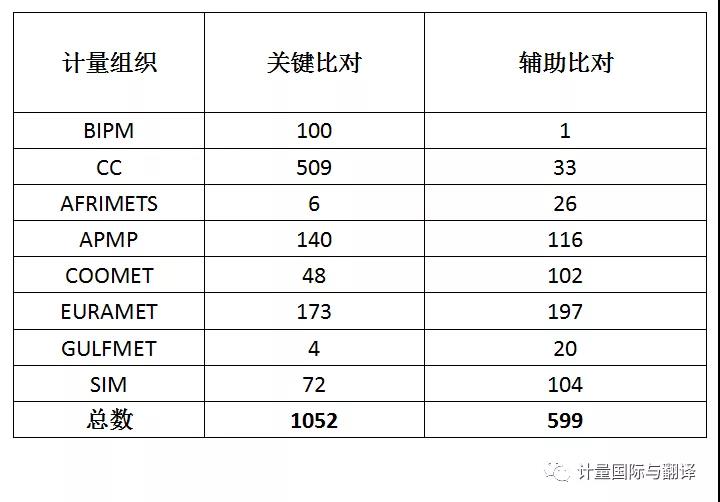 各區(qū)域計量組織國際比對統(tǒng)計