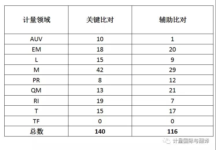 中國計量科學研究院NIM擁有的校準與測量能力CMCs項目總數(shù)達到1575項,位居世界第三。在AUV、EM、L、M、PR、QM、RI、T、TF領(lǐng)域分別為:56、180、79、68、27、886、195、50、34項,其中QM化學和生物領(lǐng)域,CMCs總數(shù)NIM位居第一,后面依次為美國、俄聯(lián)邦、韓國、日本、德國、英國。NIM共參加關(guān)鍵比對373項,含主導28項;共參加輔助比對70項,含主導7項。
