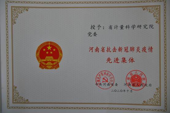 10月21日,河南省抗擊新冠肺炎疫情表彰大會(huì)在鄭州隆重舉行。河南省計(jì)量科學(xué)研究院黨委被中共河南省委表彰為:河南省先進(jìn)基層黨組織;被中共河南省委、河南省人民政府表彰為:河南省抗擊新冠肺炎疫情先進(jìn)集體。