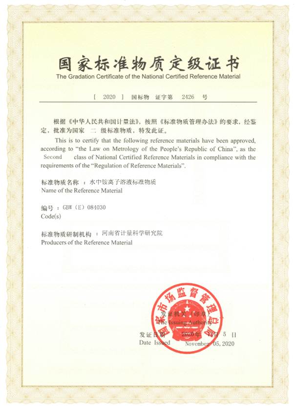 11月18日,記者從河南省計(jì)量院獲悉,該院新增的“水中氨氮溶液標(biāo)準(zhǔn)物質(zhì)”、“水中銨離子溶液標(biāo)準(zhǔn)物質(zhì)”獲國(guó)家市場(chǎng)監(jiān)督管理總局批準(zhǔn),將投產(chǎn)全國(guó)標(biāo)物市場(chǎng),這兩種標(biāo)準(zhǔn)物質(zhì)研發(fā),也填補(bǔ)了河南省在該領(lǐng)域標(biāo)準(zhǔn)物質(zhì)研制能力的空白。