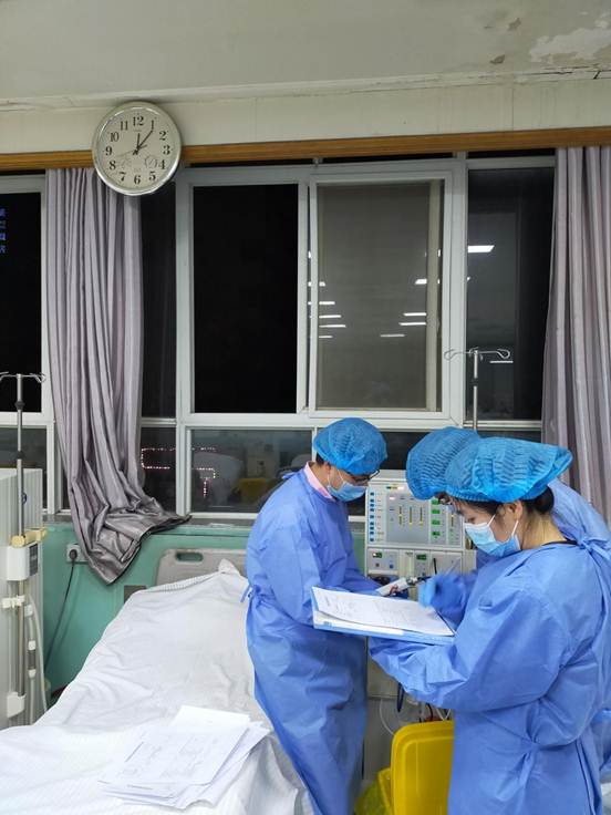 12月10日凌晨0:06,河南科技大學(xué)第一附屬醫(yī)院病房里,伴著血液透析儀的嗡鳴聲和次第閃爍的指示燈,身著藍(lán)色防護(hù)服的楊宇快速報(bào)出一組組透析液流量監(jiān)控示值數(shù)據(jù),身旁的李垚博正操控著設(shè)備,目不轉(zhuǎn)睛地盯著血液透析儀,執(zhí)筆的袁曉麗迅速地記錄著,張書(shū)偉則負(fù)責(zé)數(shù)據(jù)復(fù)核。