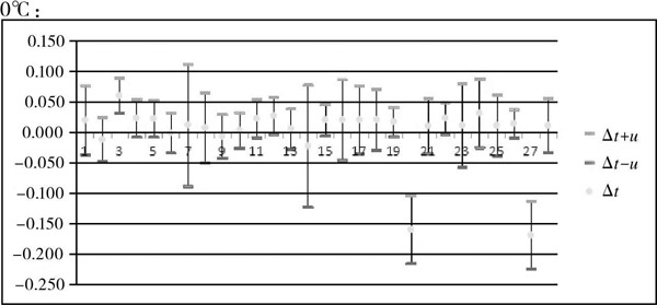 造成這一比對結果的原因有很多,電測設備準確度不滿足要求,不符合規(guī)程中對于電測設備的準確度要求,分辨力低下,造成溫度修約后的示值出現(xiàn)偏差;人為操作不當,沒有嚴格按照規(guī)程中的操作要求進行實驗,使得測出的示值偏差較大;不確定度評定不合理等。