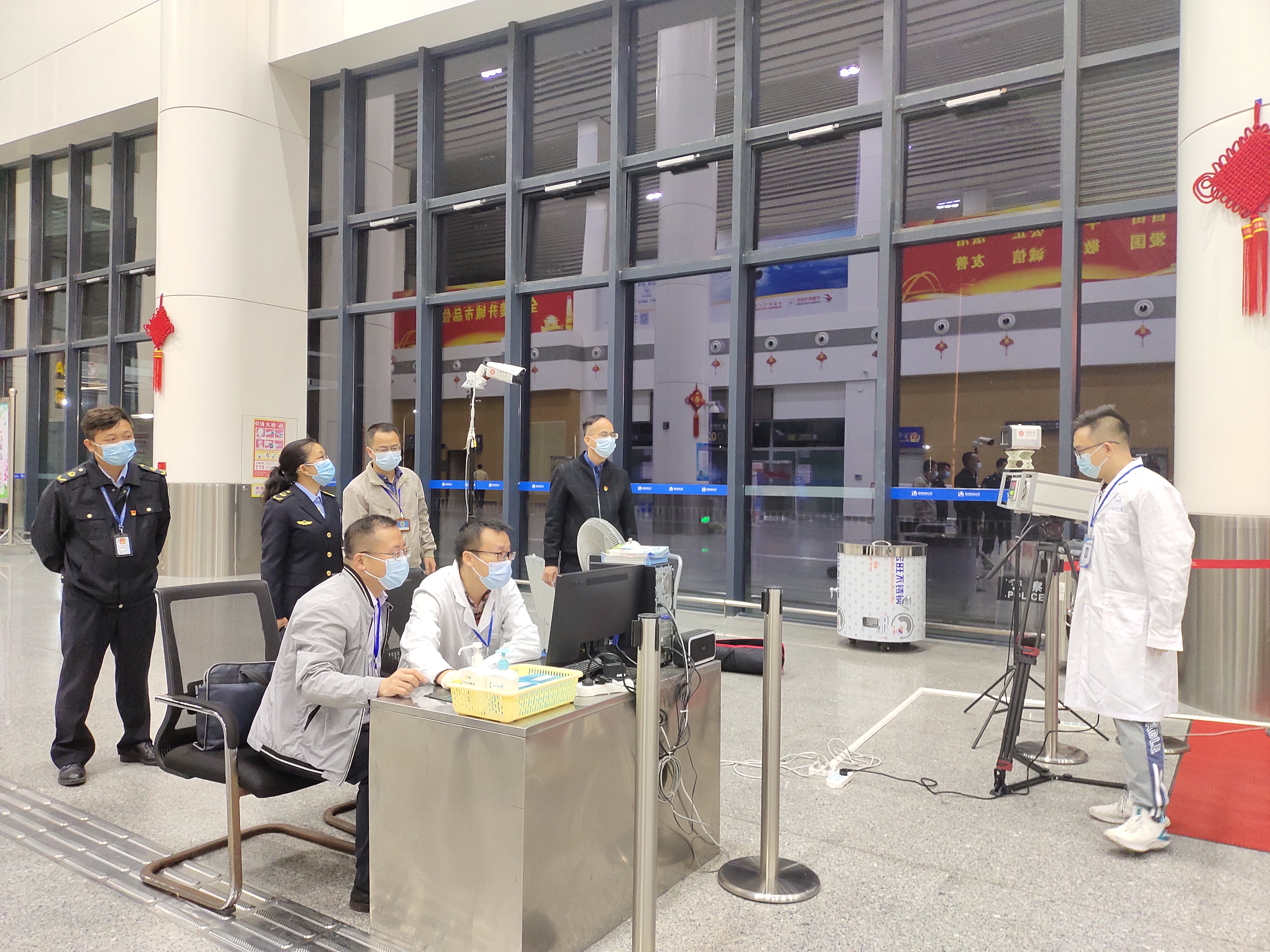 技術專家在梧州機場檢測紅外線測溫儀