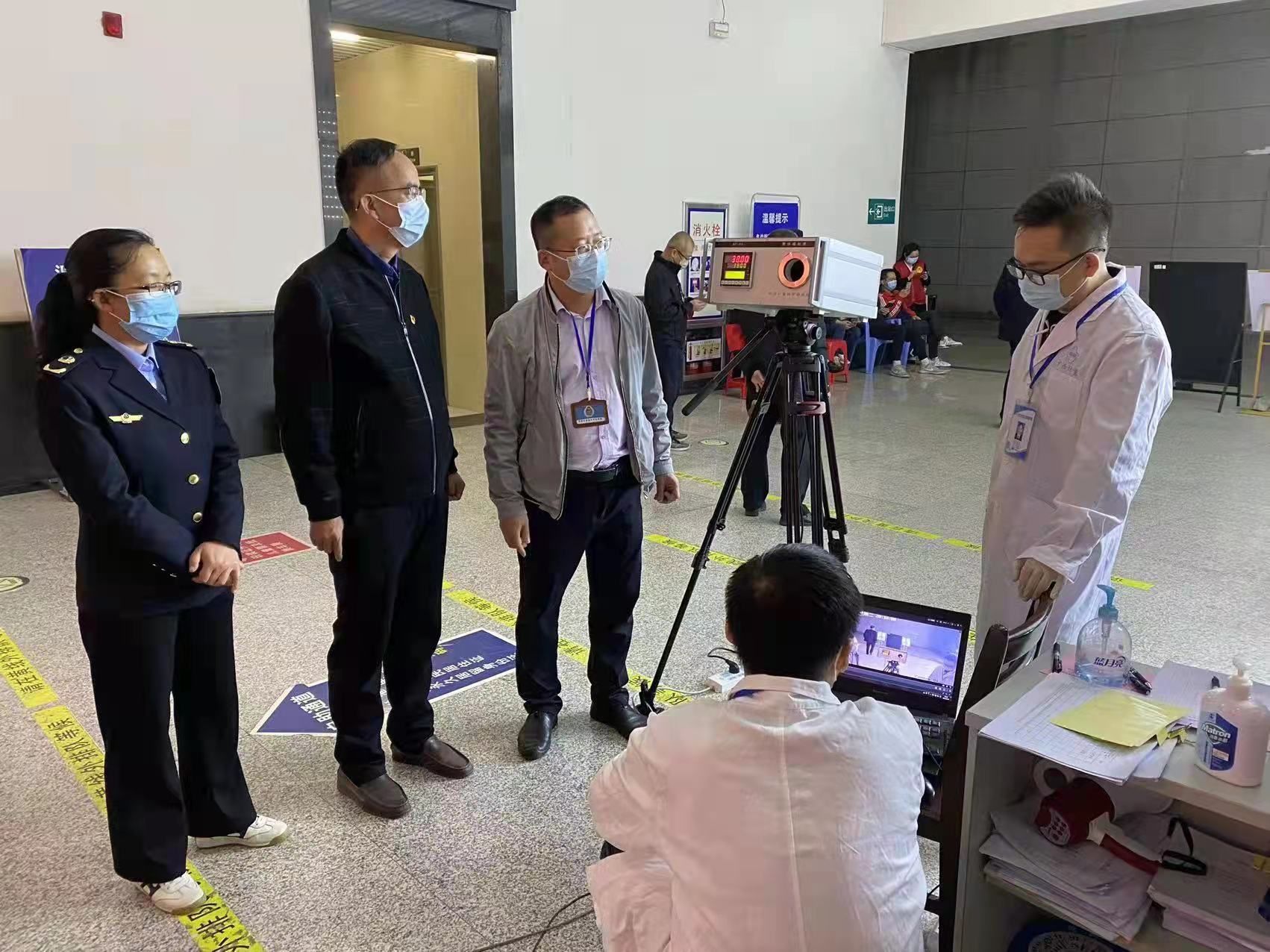技術專家于當晚7時許抵達梧州,隨即與當?shù)厥袌霰O(jiān)管部門一起,深入藤縣高鐵站、梧州西江機場、梧州南高鐵站,對上述場所使用的紅外測溫儀和紅外篩檢儀進行檢測,并將檢測情況及時反饋當?shù)毓芾聿块T。技術專家現(xiàn)場就測溫設備正確使用及日常維護進行科普,避免因操作不當造成量值不準確。
