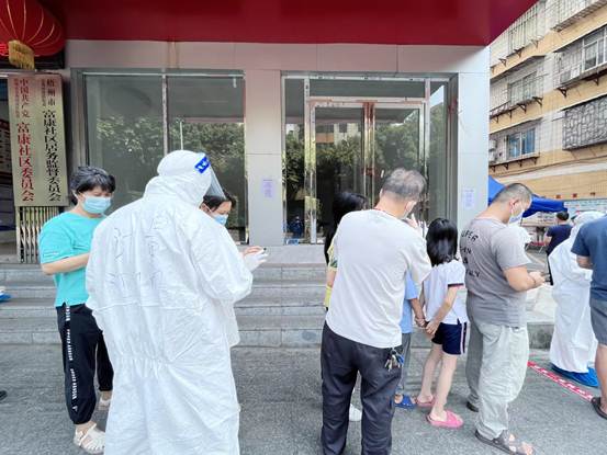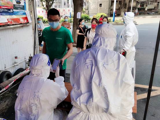 在抗疫過程中梧州市計量所黨員干部積極請戰(zhàn),主動投身疫情防控志愿者行動,協(xié)助社區(qū)、醫(yī)護人員開展疫情防控工作?!澳茫乙呀?jīng)幫您測量了體溫,您要提前打開智桂通的健康碼,顯示綠碼后才能進行核酸采集”、“大家要有序排隊,保持一米安全距離,不要擁擠”、“您好,請您提前打開核酸碼,方便等下信息錄入,如果您沒有核酸碼,現(xiàn)在可以提前進行信息錄入”這些重復(fù)的話語志愿者們每天都不厭其煩的表達著。在核酸檢測過程中,他們不僅僅只做信息錄入員,而是積極充當居民群眾的“引導(dǎo)員”、防疫政策的“宣講員”,矛盾問題的“疏導(dǎo)員”,確保服務(wù)全覆蓋、核酸檢測無遺漏。一個志愿服務(wù)組織就是一座堡壘,一名志愿者就是一面旗幟,梧州市計量測試所的黨員干部們用實際行動踐行初心使命,以奉獻詮釋責任擔當,讓黨旗在疫情防控第一線高高飄揚。