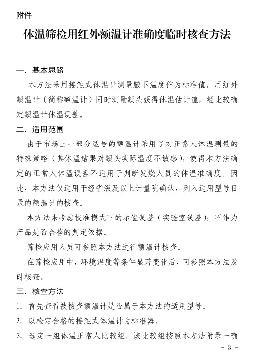 中國(guó)計(jì)量院對(duì)體溫篩檢用紅外額溫計(jì)準(zhǔn)確度臨時(shí)核查方法的建議