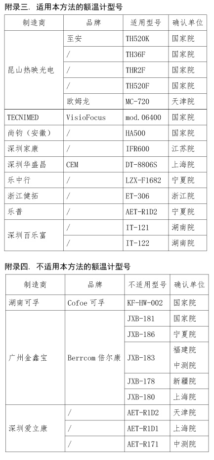 方法”附錄三適用本方法的額溫計型號目錄的更新,并補充