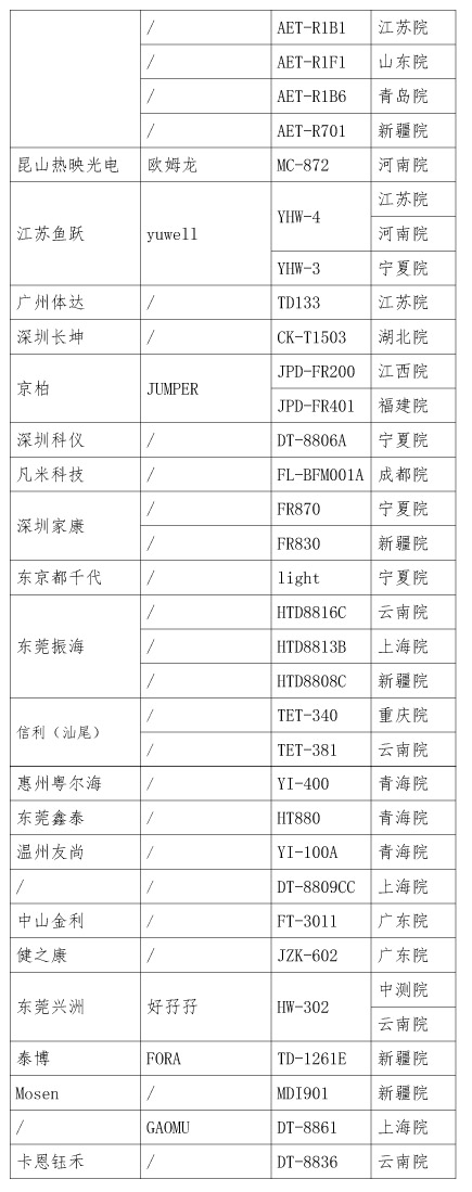 了附錄四不適用本方法的額溫計型號目錄。