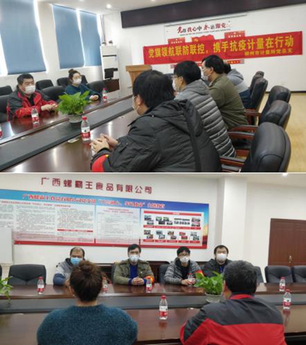 (柳州計(jì)量所黨員先鋒隊(duì)與廣西螺霸王食品有限公司相關(guān)人員進(jìn)行座談,了解企業(yè)計(jì)量保障需要,積極對(duì)企業(yè)復(fù)工復(fù)產(chǎn)進(jìn)行幫扶。)