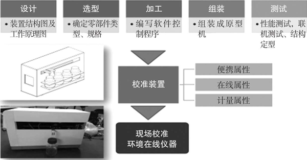 圖2 動(dòng)態(tài)自動(dòng)稀釋標(biāo)準(zhǔn)裝置設(shè)計(jì)流程與實(shí)物