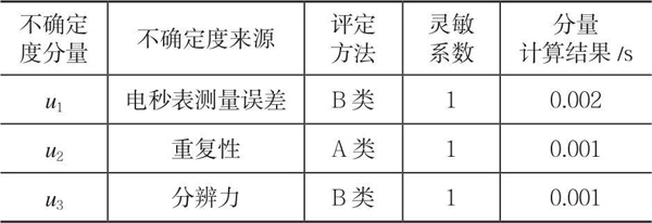 計(jì)算得出擴(kuò)展不確定度(k=2)約為0.005s<0.012s,滿足校準(zhǔn)要求。