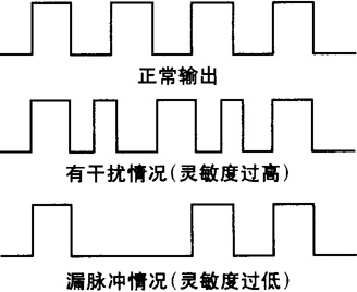 示波器校準后用于檢查,示波器接線鉤與信號線相接,地與地相接,調整示波器,應有均勻一致的方波脈沖信號出現(xiàn)。一般廠家使用說明書中均有高低電平輸出規(guī)定,從示波器顯示方波高低電平值查看是否與規(guī)定值相符。輸出情況與原因對照如圖2。