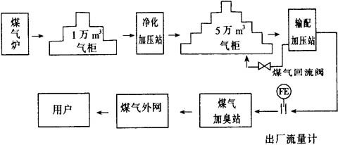 秦皇島市煤氣總公司制氣廠煤氣輸送工藝流程簡(jiǎn)圖如下: