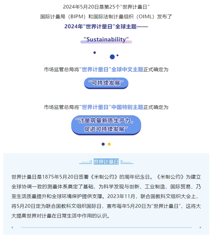 5月20日是世界計(jì)量日,是1875年在巴黎簽署《米制公約》的周年紀(jì)念日。這一公約為建立全球協(xié)調(diào)一致的測量體系奠定了基礎(chǔ),為科學(xué)發(fā)現(xiàn)與創(chuàng)新、工業(yè)制造、國際貿(mào)易,乃至生活質(zhì)量提升和全球環(huán)境保護(hù)提供支撐。