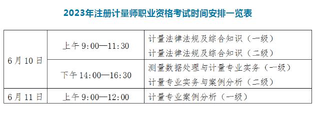 2023年注冊(cè)計(jì)量師職業(yè)資格考試時(shí)間安排一覽表